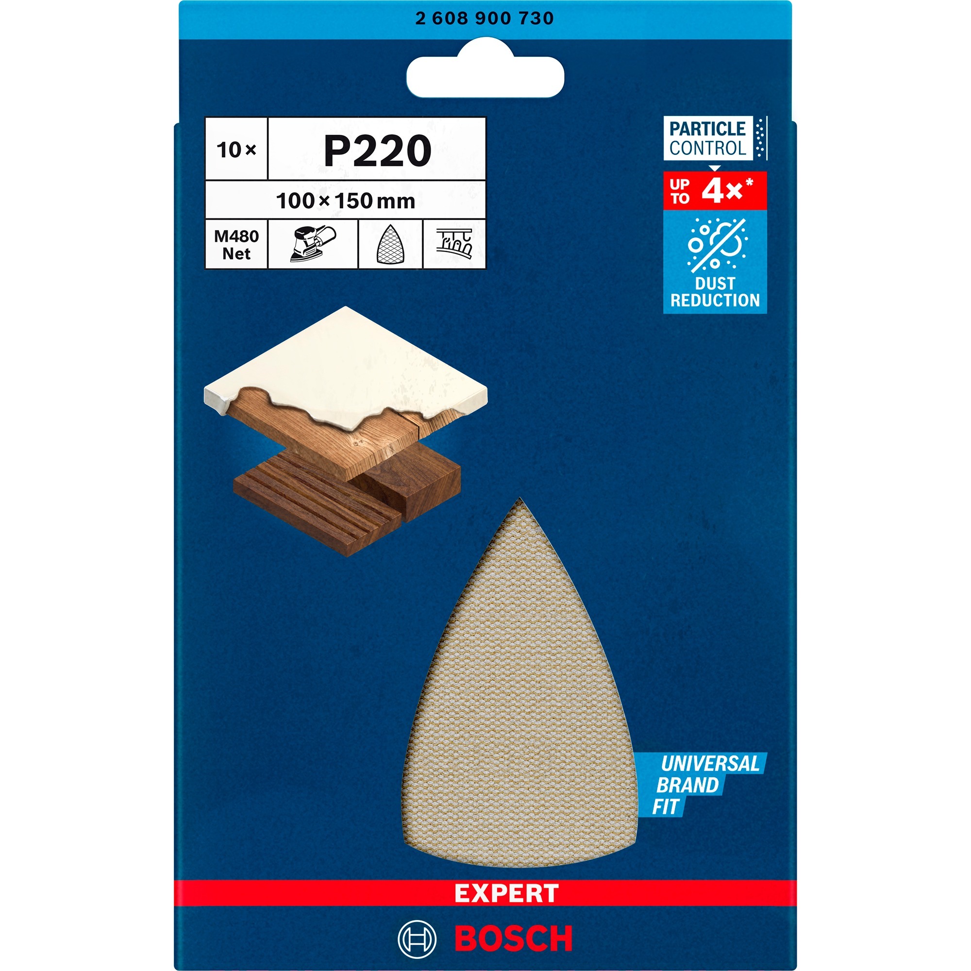 La 10 Pack Expert Sanding Sheets M480 di Bosch è adatta per smerigliatrici multi-levigatrice e smerigliatrici a delta. Garantiscono una levigatura e irruvidimento quasi privi di polvere delle superfici in legno e lacca. La struttura a rete aperta consente di estrarre la polvere di macinazione su tutta la superficie. La polvere è il più grande svantaggio della rettifica, ma il sistema di controllo delle particelle di Bosch ha in gran parte risolto questo problema. La expert sanding sheet M480 è adatta per la macinazione fine di legno tenero, legno duro, legno impiallacciato, lacca, cartongesso, plastica, intonaco e cartongesso. È anche ideale per levigare rivestimenti e sporco, levigare vernici e primer irruviditi.