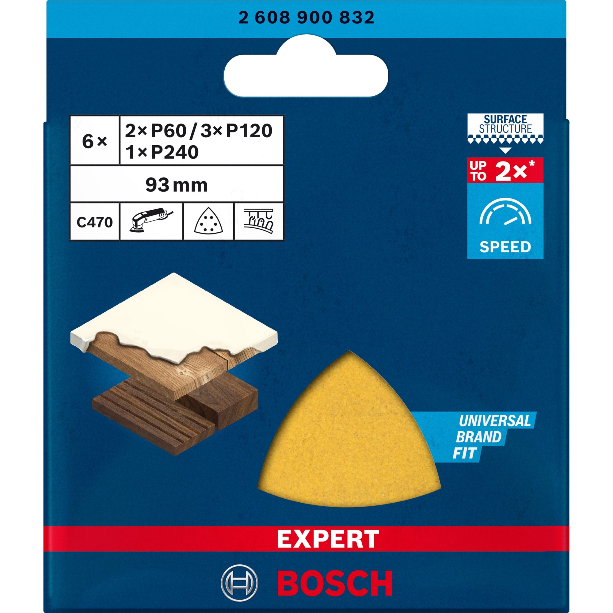Grazie alla bosch surface structure, la lastra di levigatura Bosch Expert C470 ha un eccezionale tasso di rimozione del materiale durante la levigatura di legno, vernice, vernice, intonaco grezzo e riempitivi. Molte carte vetrate si intasano rapidamente con la polvere e perdono la loro abrasività, il che significa che la levigatura richiede molto più tempo. Combinando grani taglienti e una tecnologia speciale che impedisce l''intasamento, la carta vetrata Expert C470 mantiene le sue capacità speciali. Ciò significa che puoi lavorare più velocemente e più a lungo senza dover scendere a compromessi sul risultato della macinatura. Il set di lame di levigatura a 6 pezzi C470 è adatto per smerigliatrici a delta e utensili multifunzione della maggior parte delle marche e può essere cambiato e fissato in modo rapido e semplice grazie al sistema di fissaggio Velcro.