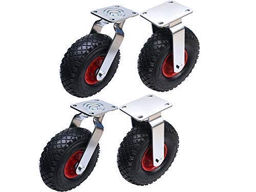Ruote centrali pneumatiche in acciaio da 260 mm, 2 girevoli e 2 fisse (300 x 4), gonfiate da 4 a 10 pollici. Queste sono ruote pneumatiche di ottima qualità.