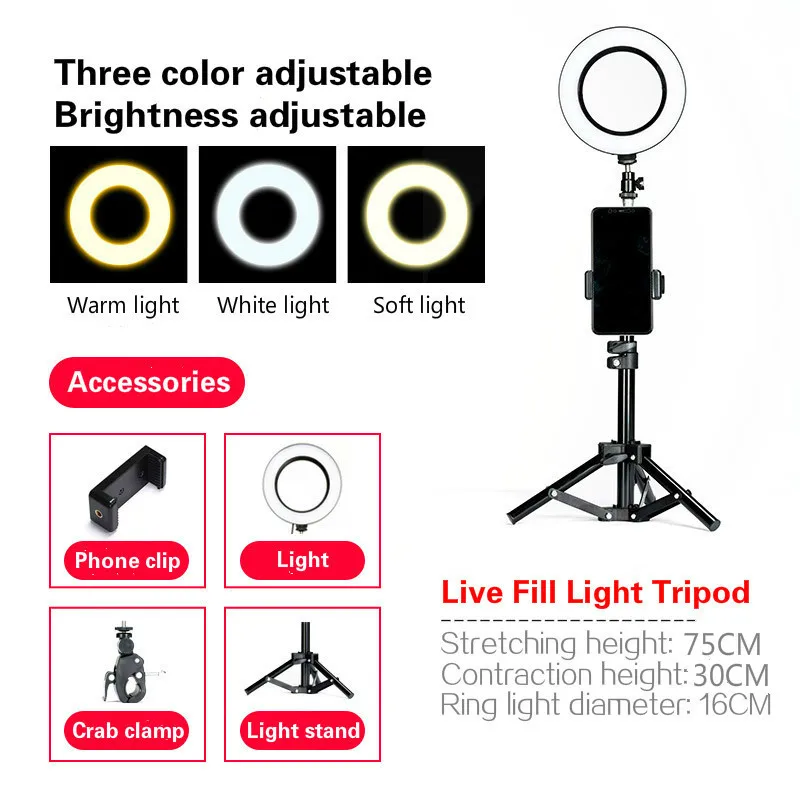 26cm/10.2inch 16CM/6Inch LED Selfie Ring Light with Stand Studio Photography Photo Ring Fill Light Tripod for Smartphone Makeup