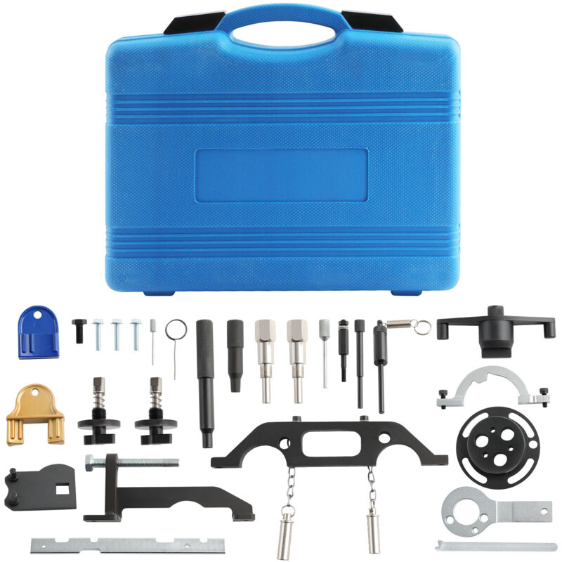 Engine Timing Tool Kit For Opel For Vauxhall for GMC 1.3 cdti 16v, 1.9 cdti, 2.0 dti, 2.2 dti Application for Opel / for Vauxhall Diesel Timing Tool Set Comprehensive set for locking camshafts and crankshafts. Also for removal and installation of Injection and Water Pumps when changing Timing Belts. FIT ENGINE Diesel engine: 1.3CDTI 16V, 1.9CDTI, 2.0DTI, 2.2DTI Agila, Combo-C, Corsa, Frontera, Omega, Sintra, Tigra Petrol engine: 1.0 12V/1.2 16V (since 97) 1.4/1.6/1.8/2.0/2.2 16V (since 95) Agila, Combo-C, Corsa, Frontera, Omega, Sintra, Speedster, Tigra, Vectra, Zatira Package include Water pumps Locking Camshaft Locking Tool Camshaft Locking Tool Chain and sprocket Setting gauge adapter Crankshaft Locking Tool for fastening the flywheel in TDC position, and for checking and adjusting the valve timing Setting gauge for pulse wheel Flywheel Holder Crankshaft Locking Tool Fixing screws, 3 pieces M6 x 30 mm Locking pin timing chain tensioner Chain and sprocket setting gauge Camshaft