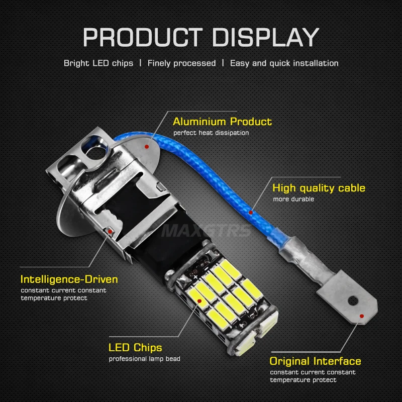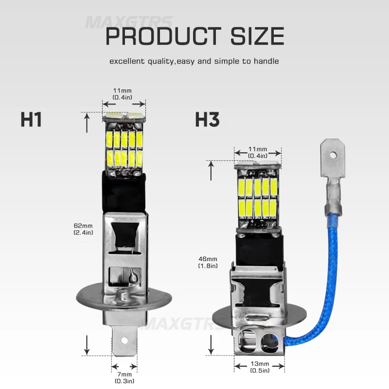 2x H3 H1 4014 26SMD LED Replacement Bulbs Car Fog Lights Canbus No Error Daytime Running Light Auto Lamp White/Blue/Ice Blue