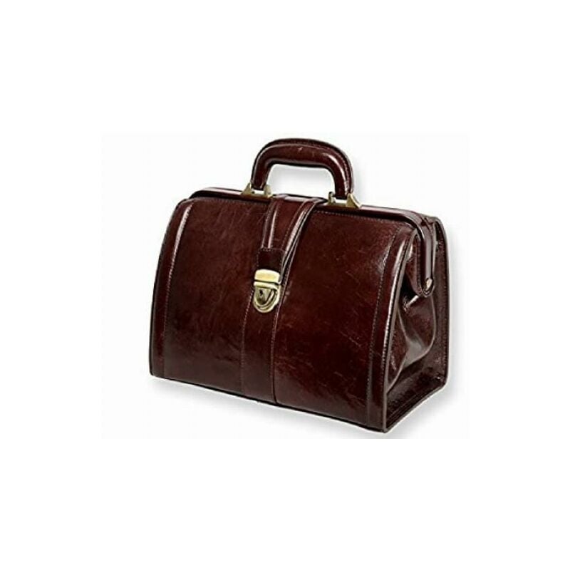 Fondo rigido, tasca interna a lampo e tasca esterna a soffietto, serratura tuc brunita.