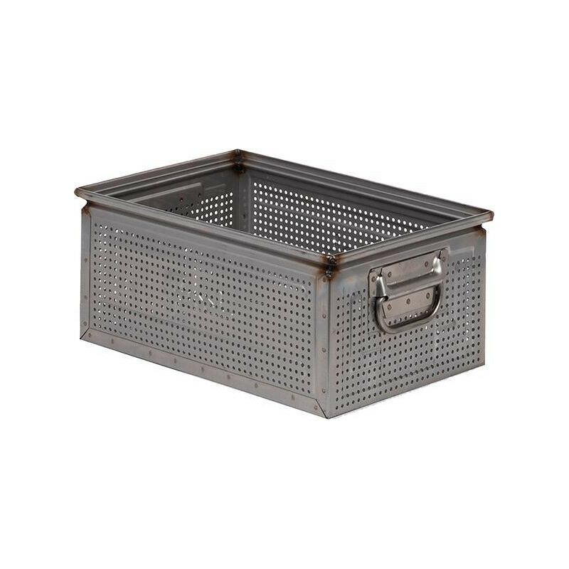 Contenitore impilabile tipo misura 272. forato - Contenitore rettangolare metallico impilabile - Con maniglie - Pareti e fondo forati - Per lo sgrassaggio dei componenti prima del montaggio. per lo sgocciolamento dei liquidi di lavaggio. per la ventilazione del contenuto e anche per lo stoccaggio di materiale industriale
