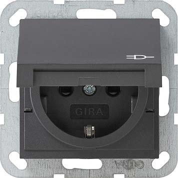 Gira 272428 SCHUKO-Steckdose 16 A 250 V~ mit Klappdeckel mit Schraubklemmen und Symbol, System 55, anthrazit