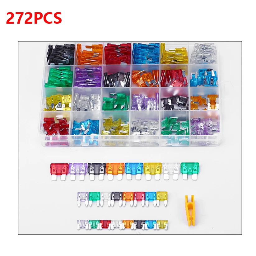 272PCS Car Boat Truck Blade Fuse Assortment 2A 3A 5A 10A 15A 20A 25A 30A 35A Fuse with Plastic Box