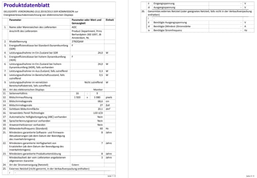 Luminosità/contrasto: 250 cd/m² 4.000:1, connessioni: 1x VGA (analogico), 1x HDMI, 1x DisplayPort 1.2, 2x altoparlanti da 2 watt, tempo di risposta 4ms