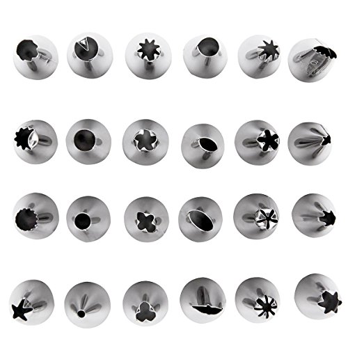 Decorating Set include: 24 punte in acciaio INOX, 1 borsa riutilizzabile e 2 accoppiatori plastica riutilizzabili, con cui è possibile creare tutti i tipi di modelli sulla torta.