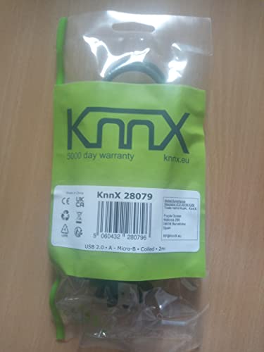 KnnX 28079 | Cavo a spirale USB 2.0 | A maschio a Micro-B maschio | che si estende fino a 2 m | Cavo di ricarica dati e trasferimento combinato per smartphone