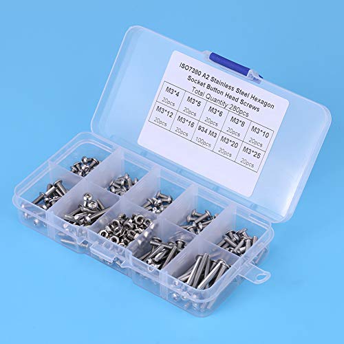 280pcs Viti a testa cilindrica in acciaio inox Bulloni Kit assortimento dadi con custodia in plastica M3 * 4/5/6/8/10/12/16/20/25