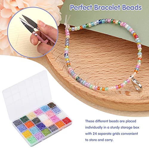 28800 Pcs Perline per Braccialetti Collana Set, 24 colori Perline mini perline con filo elastico e forbici, per bracciali, gioielli e artigianato, Per la creazione di gioielli fai-da-te