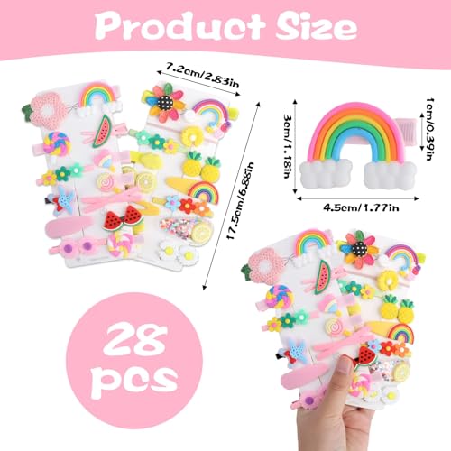 28pcs Mollette Capelli Bambina, Fermagli per Capelli Bambina con Motivi di Frutta, Arcobaleno, Anguria, Lecca, Accessori per Capelli Fermaglio Clip per Capelli