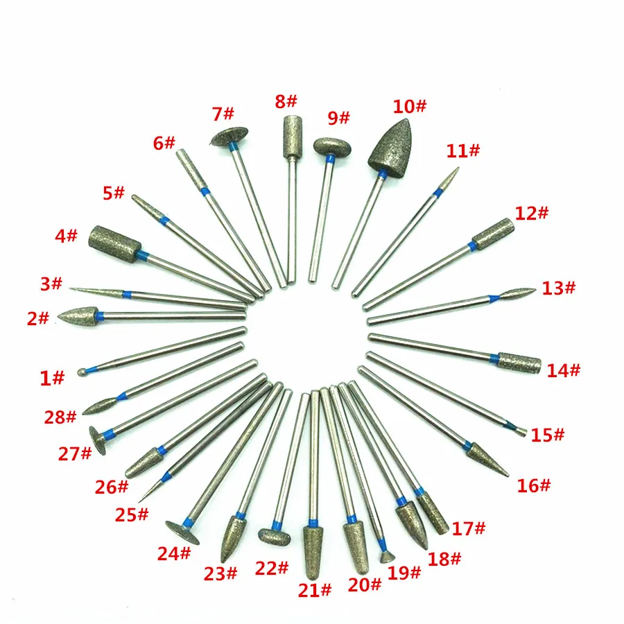 28Pcs 2.35mm Shank Diamond Grinding Bur Drill Bits;