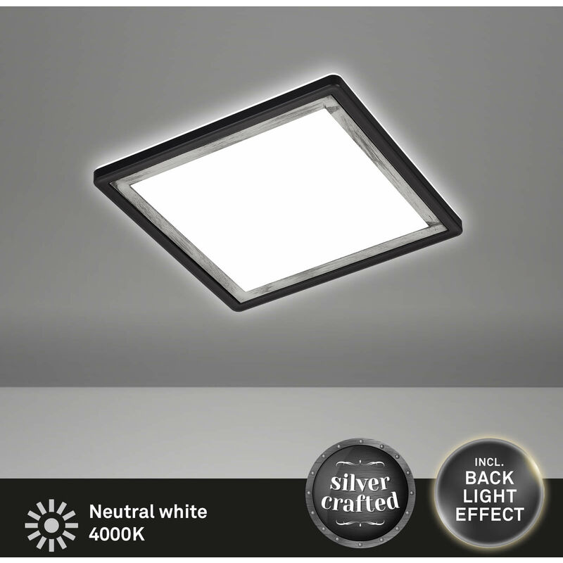 I punti forti di questa lampada da ufficio a LED sono l'altezza estremamente piatta di 2,8 cm e un attraente effetto retroilluminato, che crea una bella luce indiretta sul soffitto dello spazio abitativo. Questa moderna lampada a LED ha un bordo stretto in nero e una superficie decorativa in argento antico (Silver Crafted) all'interno. Con 2400 lumen, l'apparecchio è molto luminoso e ideale per corridoi, cucine o uffici domestici. Grazie ai 18 Watt e alla temperatura di colore bianco neutro di 4000 Kelvin, la lampada a LED è ideale come lampada da cucina, da ufficio o da corridoio. Le dimensioni del prodotto della lampada da soggiorno a LED sono date come 293xx293x28 mm (LxWxH)