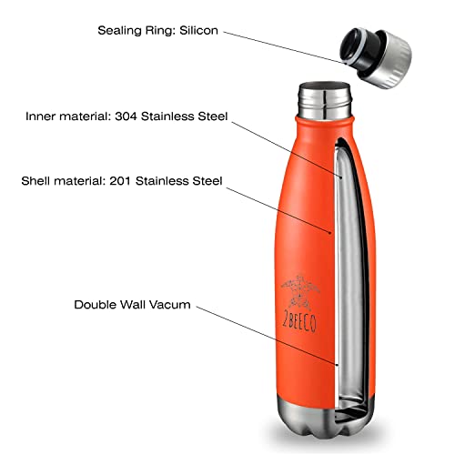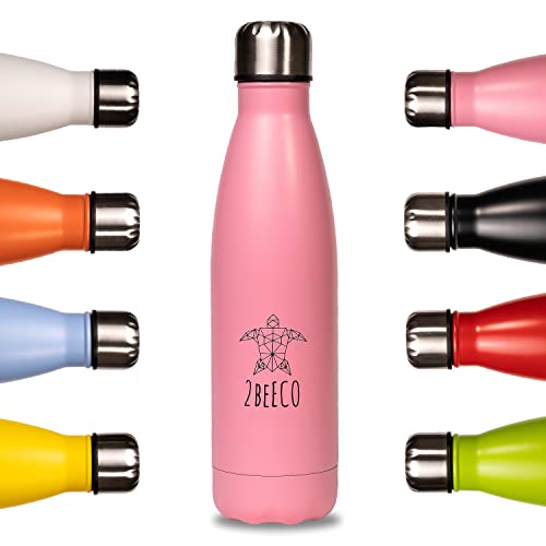 2BEECO Borraccia Termica Senza Perdite - 500ml - Senza BPA per Bambini, Scuola, Sport, Campeggio, Yoga, Palestra, Ciclismo (Rosa - Pink)