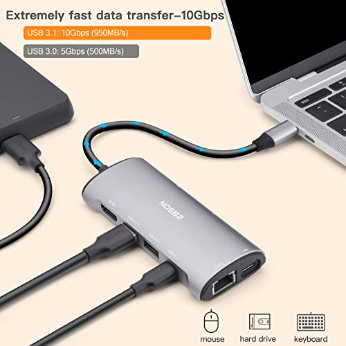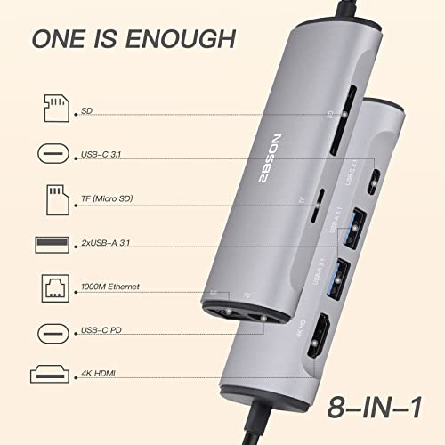 2BSON 8 in 1 USB C Hub Multiport Adapter Dual HDMI USB C Docking Station con 4K HDMI+RJ45 Ethernet USB 3.1 e 100W PD per MacBook, DELL, Surface