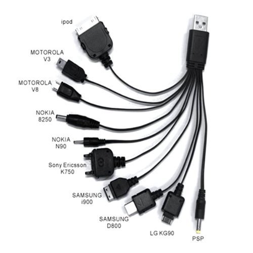 2direct GmbH Kit di caricatori Telefono Portatile - Multi Connettori + Cavo USB - 10 Adattatori in 1 Cavo - USB Universale per iPod/iPhone/PSP/Fotocamera/Nokia/HTC/LG/Samsung/Blackberry