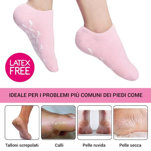 2EASY - Maschera Piedi Calze in Gel Idratante Unisex, fino a 40 utilizzi, con Vitamina E, Olio d'Oliva, Rosa e Jojoba, con antiscivolo, taglia unica, ripara e ammorbidisce la pelle (Rosa)