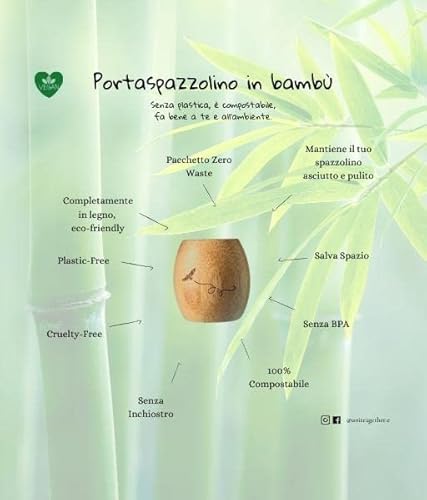 [100% BAMBU'] Portaspazzolino 100% in bambù, resistente ed ecologico, facilmente compostabile, a zero rifiuti.