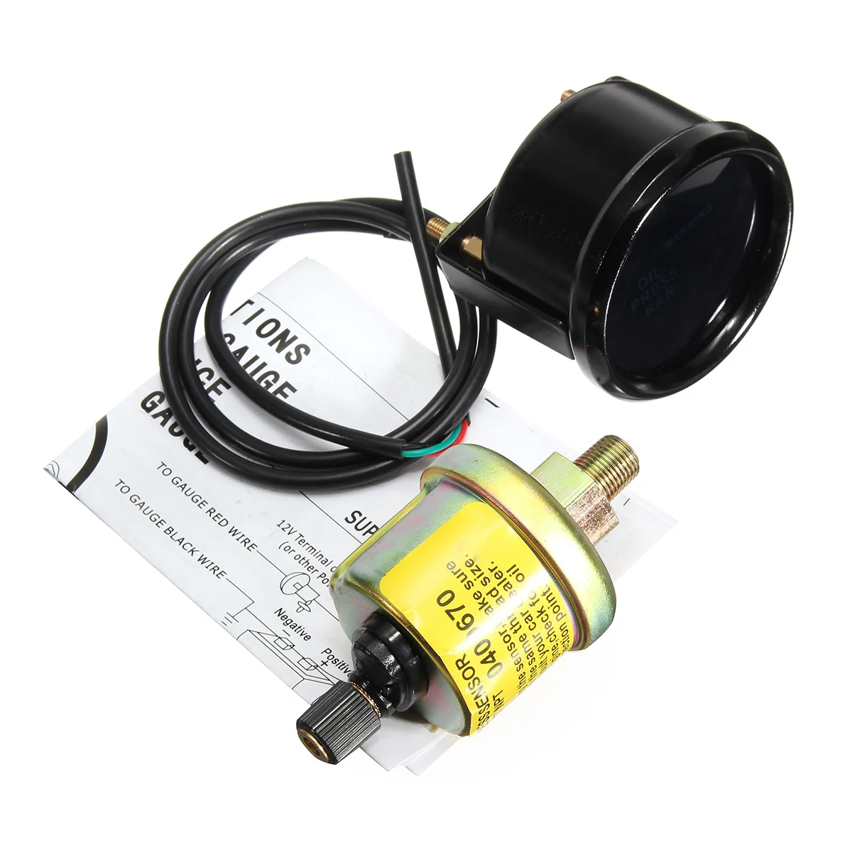 2inch 52mm 0-10 Bar Oil Pressure Gauge Digital LED Display Black Face Car Meter with Sensor