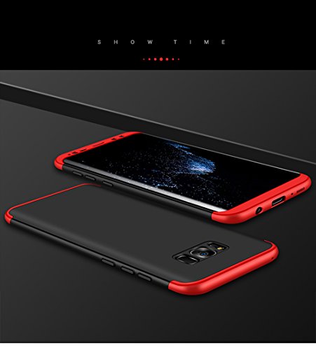 2ndSpring Cover per Samsung Galaxy S8,360 Gradi della Copertura Completa 3 in 1 Hard PC Case con Protezione dello Schermo di Vetro Temperato Custodia per Galaxy S8 Rosso Nero