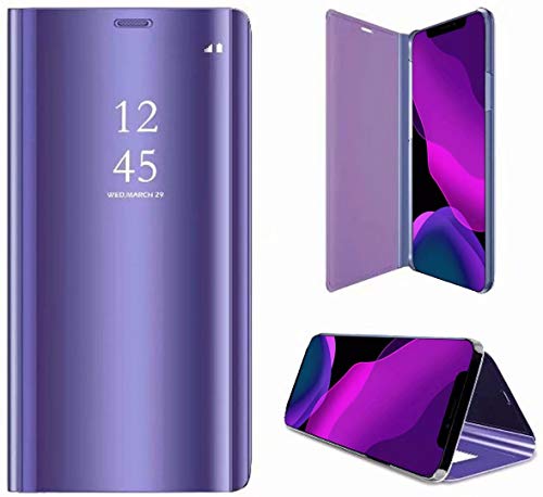 2ndSpring Custodia per Galaxy A7 2018 / A750,Caso Specchio Clear View Standing Traslucido Flip Case con Funzione Stand PU Premium Custodia in Pelle Cover,Viola