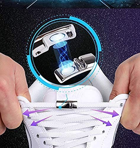 2Pair Thick Magnetic Shoelace Buckle Metal Shoelaces Elastic Locking Quick No Tie Lazy Shoe Laces Buckle (Silver)