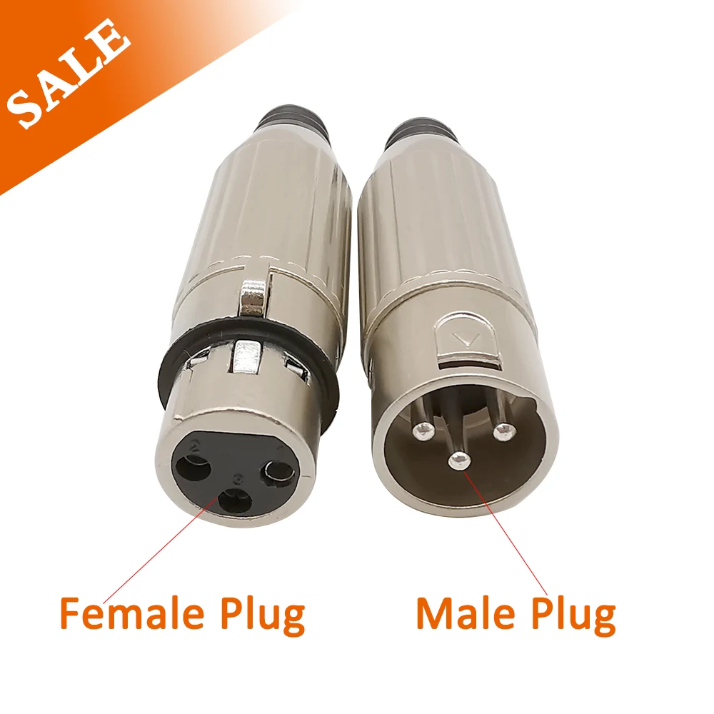 2Pcs/Lot Metal 3Pin Xlr Male Female Audio Cable Connector XLR 3-Core Plug Jack Socket Microphone Speaker XLR DIY Wire Terminals