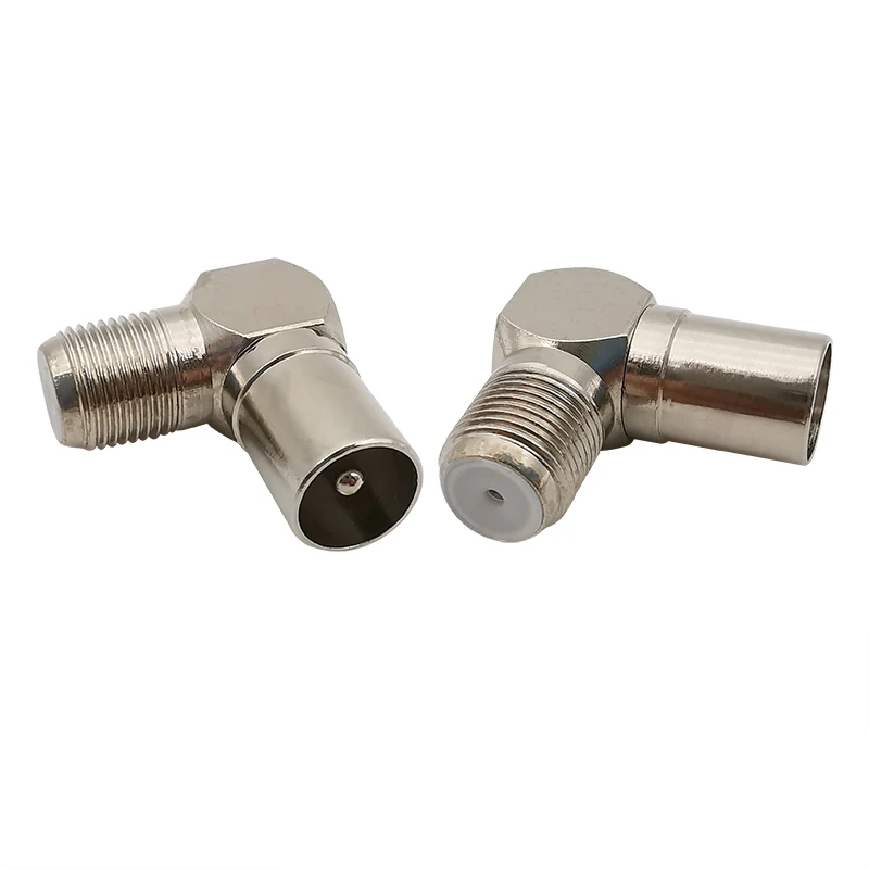 2Pcs/lot Right Angle TV Male to F Female Aerial Adapter L Shape F-Type Jack to TV Plug RF Coaxial Cable Antenna Connector