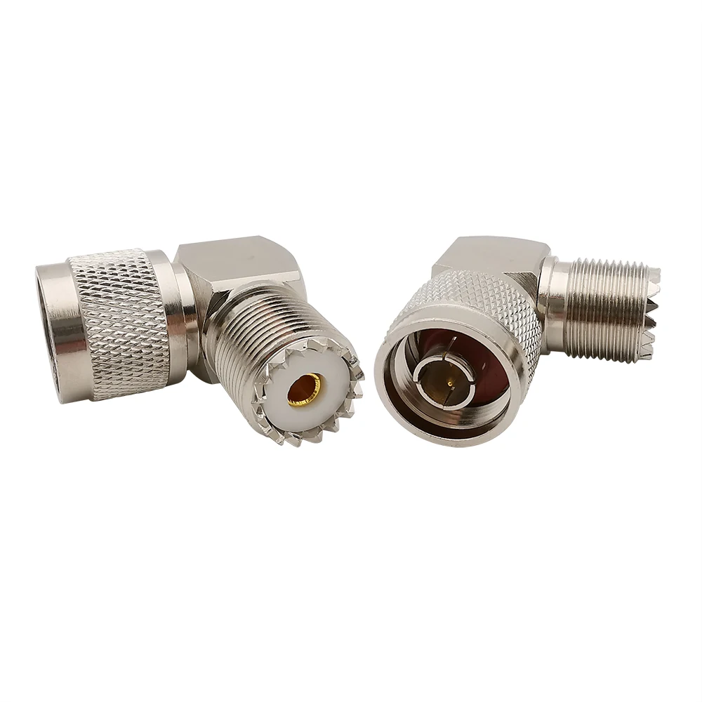 2Pcs/Lot L Shape Connector N Male to UHF SO239 Female Right Angle 90 Degree Jack Plug RF Coaxial Nickel Plating Connector