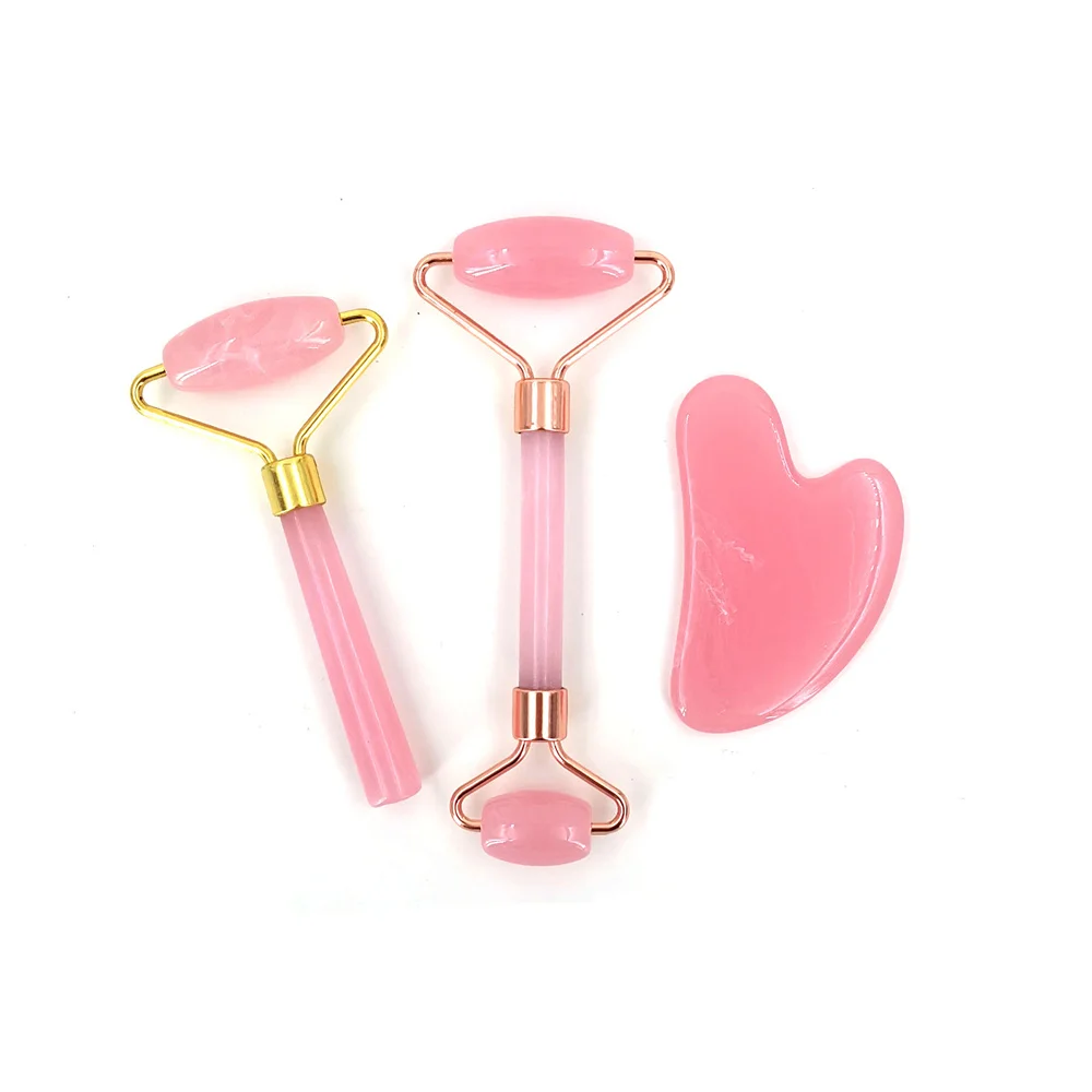 2pcs/Set Resin Gua Sha Stone For Face Massage Rose Quartz Jade Stone Face Massage Roller Gua Sha Scraper Board Face Guasha