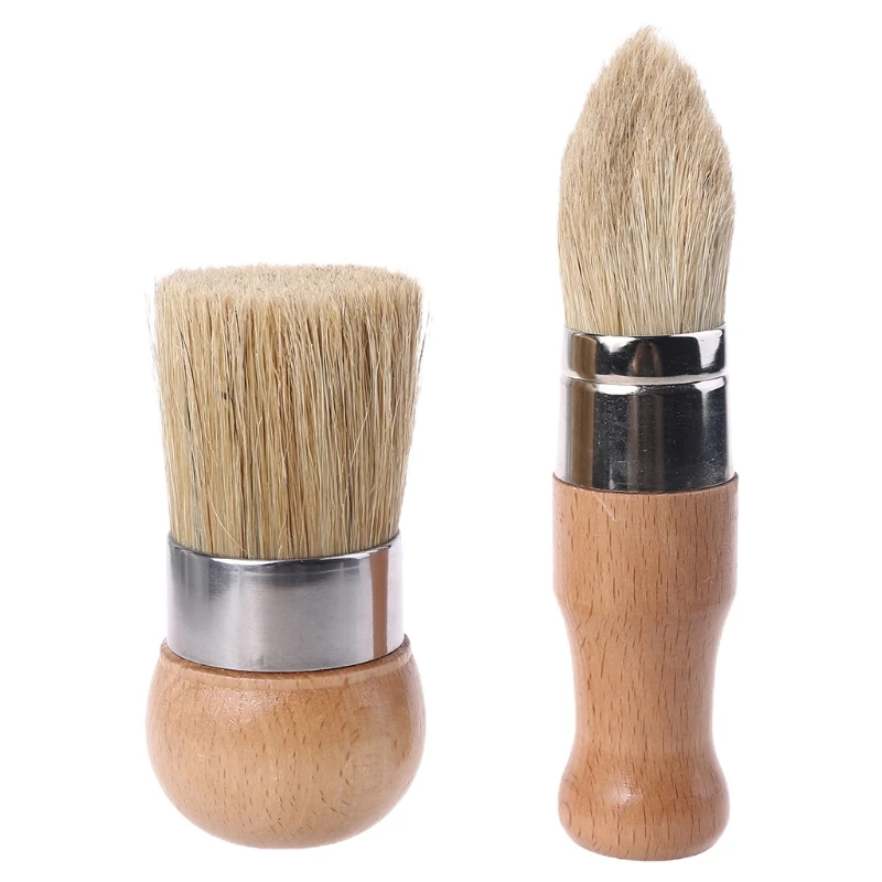 2Pcs/Set Round and Pointed Chalk Paint Wax Brush Ergonomic Wood Handle Natural Bristle Brushes Furniture DIY Painting WaxingTool