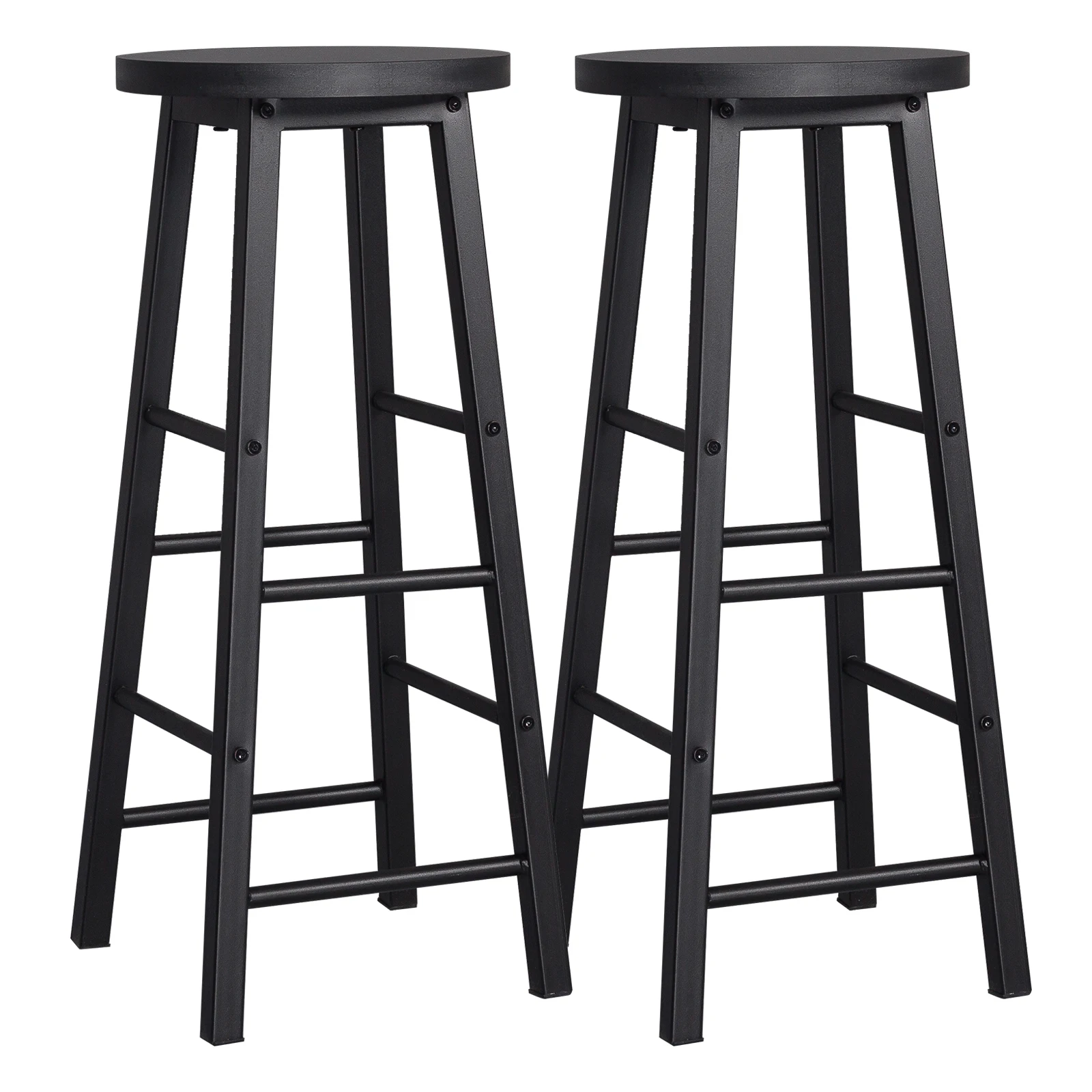 2PCS/SET Solid Wood High Bar Stools Bistro Stool Stable Durable Steel Structure MDF Seat Surface Coffee Chair Home Decor Stool