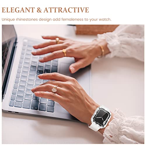 ⌚【PROTEZIONE COMPLETA】 Gli strass Bling sono intarsiati sulla maschera della cassa dell'orologio, questo paraurti per PC in vetro temperato per protezione dello schermo iWatch può proteggere l'orologio da polvere, sporco, graffi e danni. Facile da installare e rimuovere, fori precisi per l'accesso a tutti i controlli e sensori, saldi e sicuri.