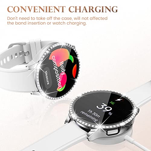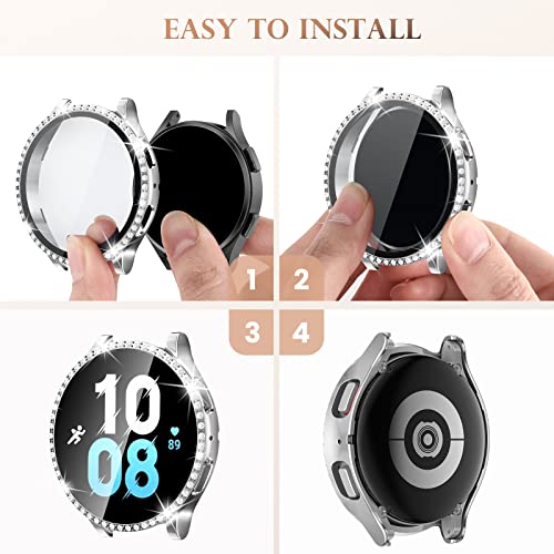 2Pezzi - Neitra Diamante Custodia per Samsung Galaxy Watch 5 2022 & 4 2021 44mm Protettiva Schermo con Pellicola in Vetro Temperato, PC Full Face Drop Bumper Cover per Galaxy Watch5 Watch4