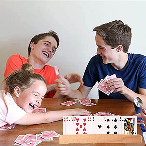 2Pezzi Porta Carte da Gioco in Legno,Organizer Curvo Porta Carte da Gioco,Supporto per Carte da Gioco per Bambini, Adulti, Anziani per Qualsiasi Gioco di Carte