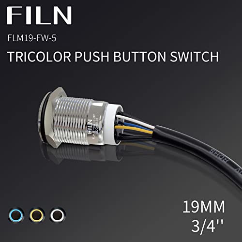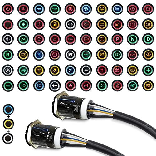 FILN 2pezzi 19mm (3/4") 185 simboli metallo Interruttore a pulsante Automobile Barca Auto Marine Interruttori 12V 24V LED IP67 Interruttore impermeabile(Anodizzato nero-Momentaneo,gialloblubianca-2)