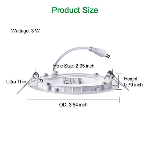 2Pezzi ultra-sottile LED da incasso a soffitto, 3W rotonda luce del pannello, 240lm bianco freddo 3000K, per la casa ufficio camera da letto bagno cucina scala del corridoio Ankishi