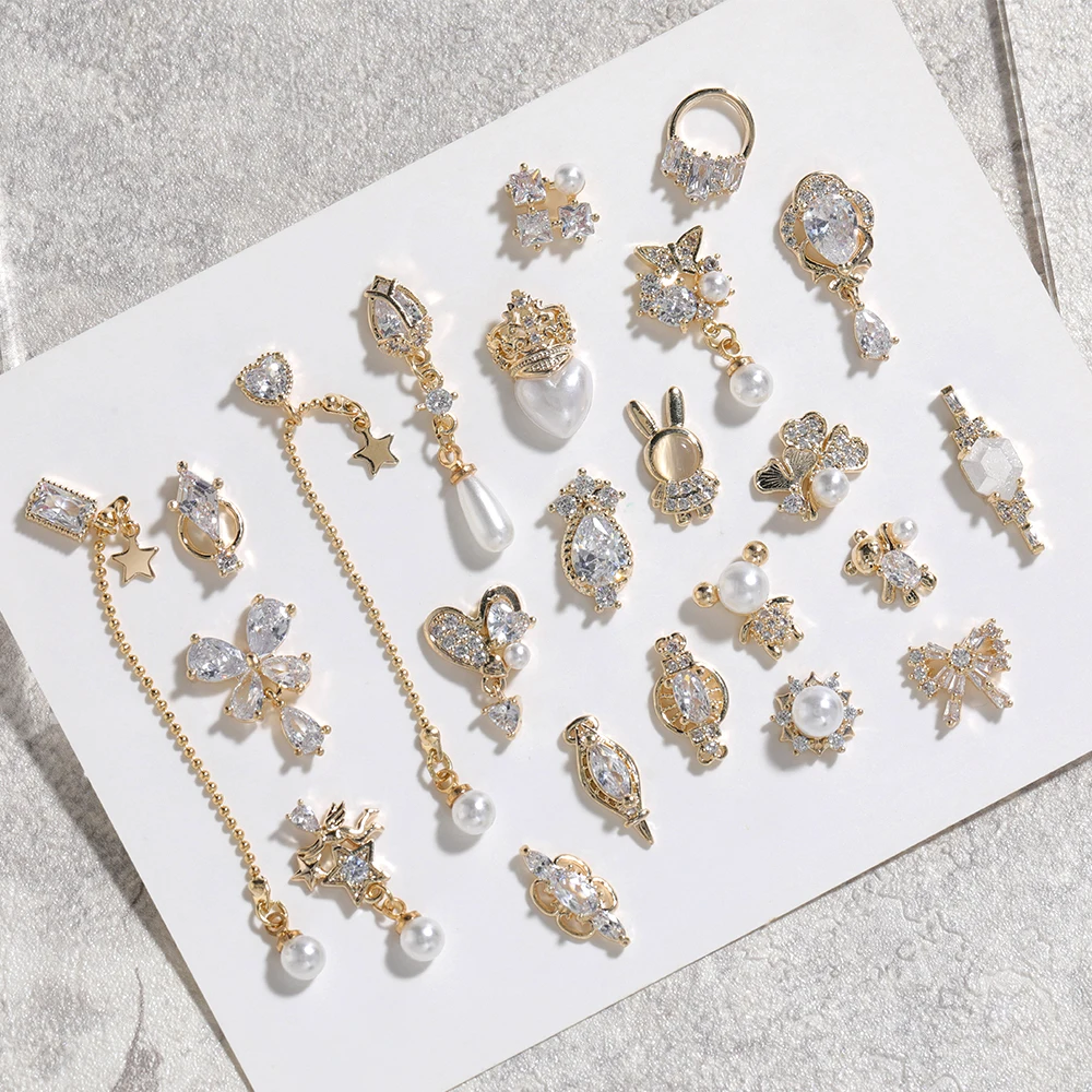 2pieces 3D Metal Zircon Nail art Japanese Jewelry Nail Decorations High Quality Zircon Crystal Manicure bow Rhinestone Charms