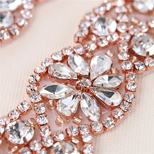 2pieces - Piccoli Appliques di strass di nozze con i cristalli per le cinghie di cerimonia nuziale Headpieces Garters del cappello nuziale (oro di rosa)
