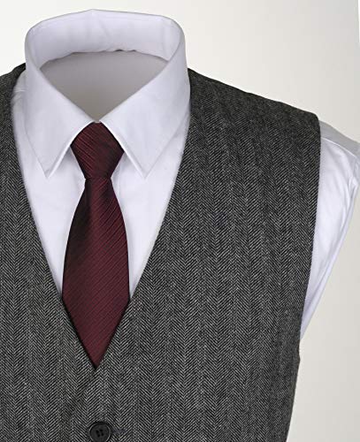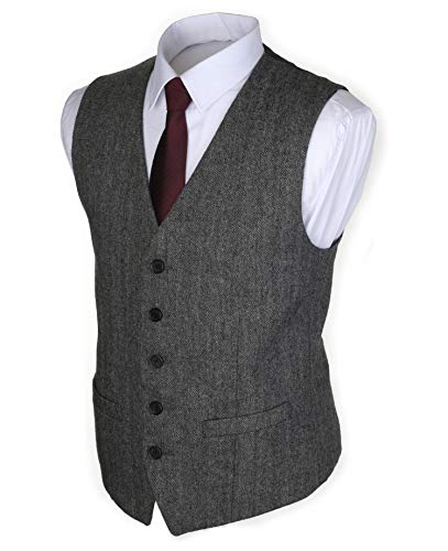 Ruth&Boaz 2Pockets 5Buttons Wool Herringbone/Tweed Business Suit Waistcoat (62, Herringbone black)