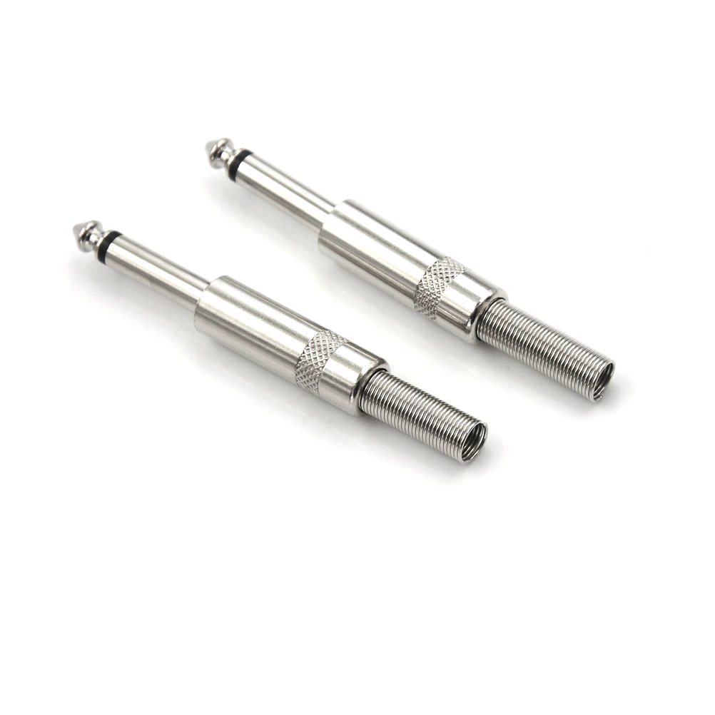 2pcs 6.35mm 2Pole Mono Amplifier Plug 6.35 Metal Microphone Jack Plug-in Audio Connector For KTV