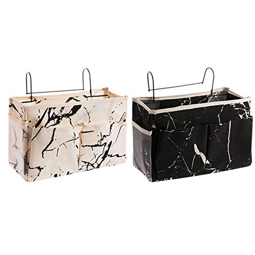2Tasche da Letto Appendibile con Gancio Borsa da Comodino per Organizer Sospesa Portaoggetti da Letto Appendibile ModelloMarmo Pratici Accessori per Il LettoAdatto per Letti a Castello Lettino Bambini