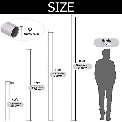 Dimensioni multiple: un set di 2 pali, 1 palo è diviso in più sezioni: 1 m (diviso in 2 sezioni), 1,5 m (diviso in 3 sezioni), 2 m (diviso in 4 sezioni), 2,5 m (diviso in 5 sezioni) . Puoi combinarli in base alle diverse esigenze.