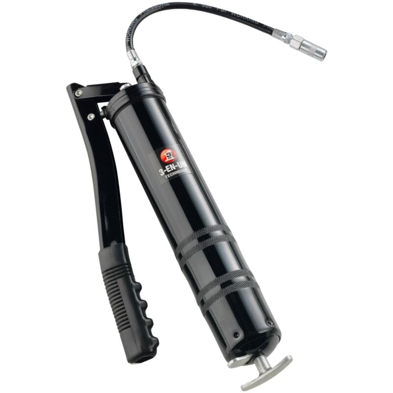 Pompa per grasso 3 in 1. pompa per grasso manuale per l'applicazione di grasso al litio in formato cartuccia da 400 g. utilizzare con cartucce di grasso al litio multiuso. ideale per la manutenzione di cuscinetti, cerniere, alberi, catene, argani, ventole, pale, ingranaggi, batterie, antenne, porte automatiche e scorrevoli, finestre, bracci di camion, ecc. ha una pressione di esercizio di 4.500 psi. progettato con un'impugnatura ergonomica per il massimo comfort. con tubo flessibile da 30 cm e raccordo.