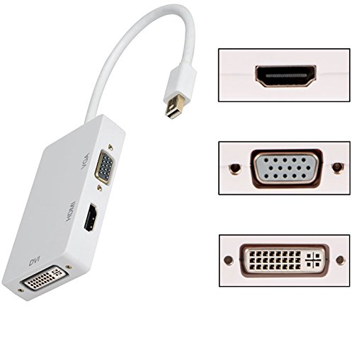 Gpct [3-in-1]] Thunderbolt Mini Display Port [a HDMI DVI VGA cavo adattatore convertitore. Supporta 720p/1080i/1080p HD output- Apple iMac/MacBook Air/Pro/Lenovo Think Pad X1/X230/Surface Book/Pro 3/4