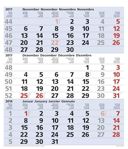 3-Monats-Planer Comfort Blau 2017: Vor- und Nachmonat, mit Datumsschieber
