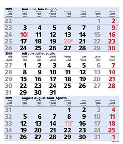 3-Monats-Planer Comfort Blau 2019: Vor- und Nachmonat, mit Datumsschieber