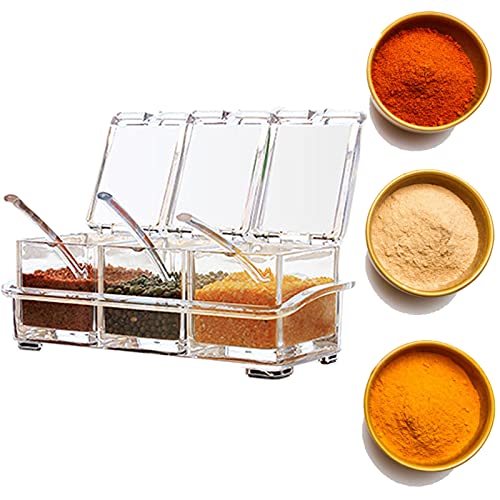 3-Piece Condimento Box Set Spezia Jar Cucina Plastica Scatola di Spezie Spezia Jar Cucina con Coperchio e Cucchiaio Trasparente Barattoli di Spezie per Zucchero, Sale, Pepe