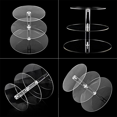 3-Tier Stand di Cupcake Torre rotunda Dessert Display Piatto acrilico Vassoio di servizio del partito Grandi Forniture per Vacanze Divertente (Pilastri stabili bonus, pilota vite)